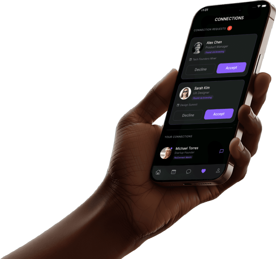 NuConnect automatically matches attendees at in-person events so attendees meet with purpose and leave with real connections… not JUST business cards, while organizers create experiences that drive REAL VALUE.